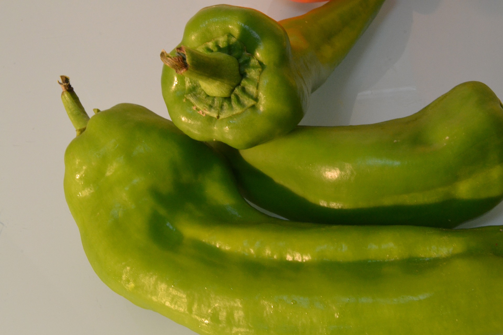 70 days. Sweet 5″ long by 2″ wide fruit. Thin-walled for frying. Yellow-green fruit turns red-orange.